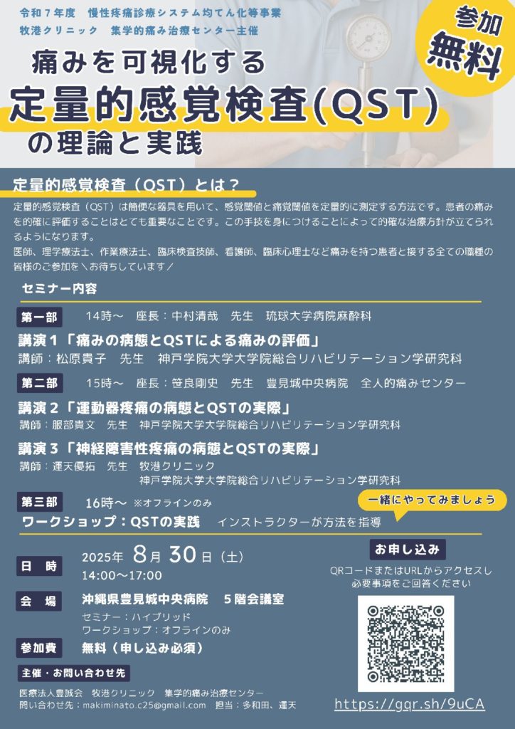 【医療従事者向け】定量的感覚検査(QST)に関する医療職のためのスキルアップ講座 開催のお知らせ